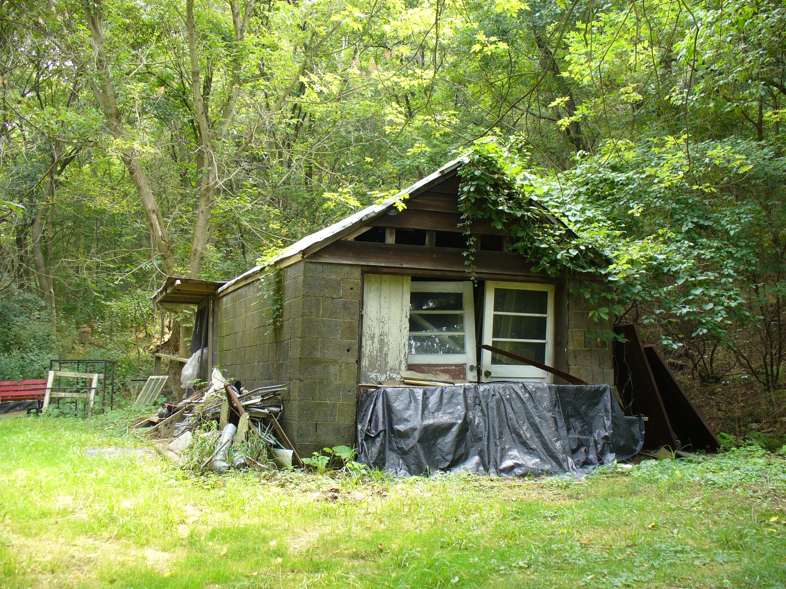 on up past where the strawberry patch was, and finally saw the garage with the door broken out but filled in with some glass doors like the kind for a regular house. It looked like someone had tried to live in it for a while. The whole thing was leaning a bit to the right and some vines had grown onto the roof. But the four-room, two-story house was gone. I started taking pictures and walking around, trying to remember where everything was. Then I saw a bathtub in the weeds and immediately recognized the nozzle on the spigot where we used to push on a small hose and sprayer to make a sit-down shower. I started up the hill where I supposed the driveway had been and when I got to the