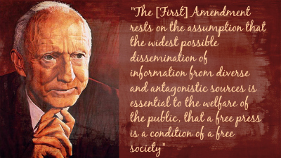 “Only a free and unrestrained press can effectively expose deception in government. And paramount among the responsibilities of a free press is the duty to prevent any part of the government from deceiving the people and sending them off to distant lands to die of foreign fevers and foreign shot and shell.” —Supreme Court Decision, New York Times Co. v. United States (403 U.S. 713), Justice Black, June 30, 1971