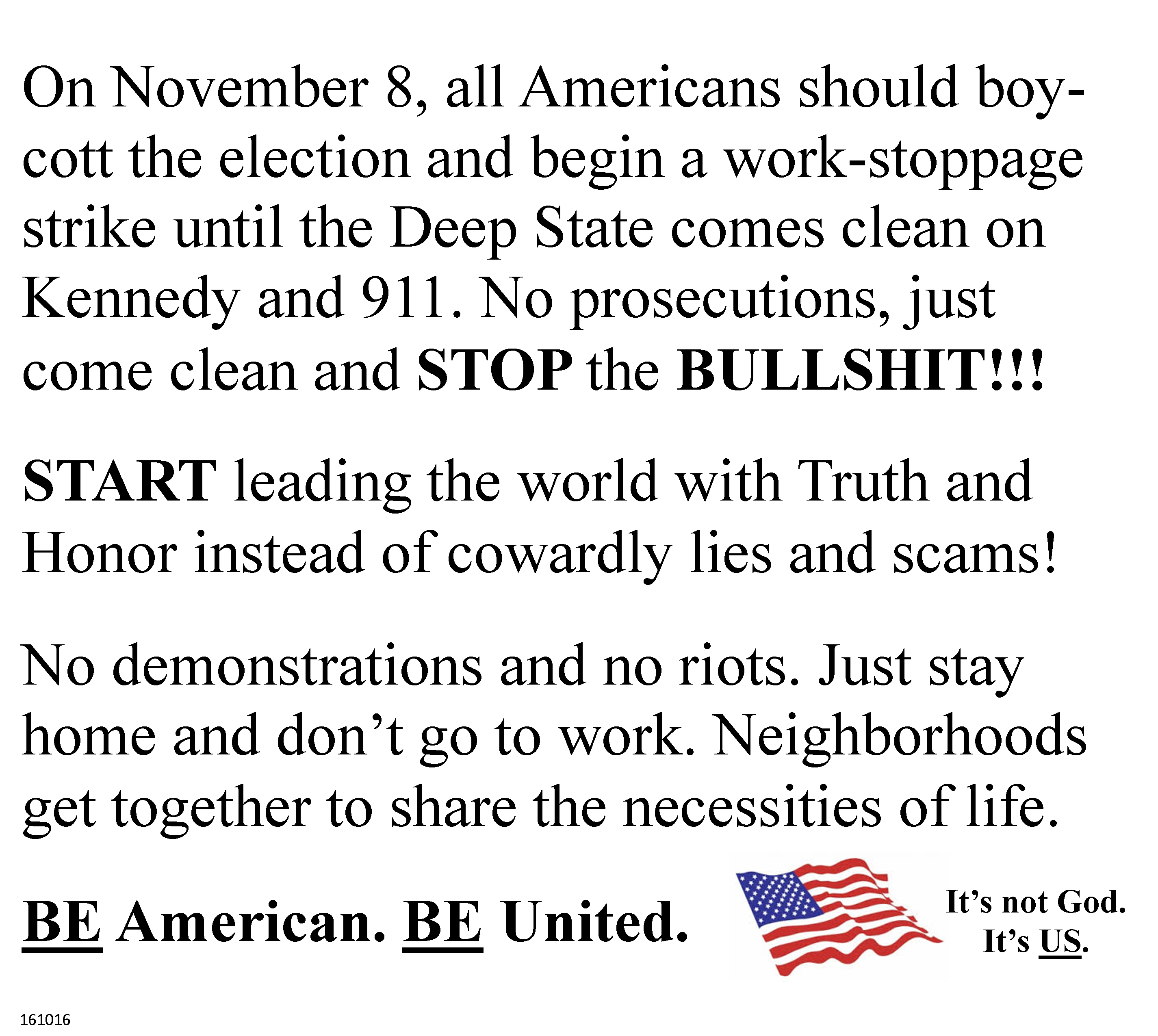 16 Oct, 2016 by TheOtherThirdWorld Boycott the 2016 Election Share this: Click to share on X (Opens in new window) X Click to share on Facebook (Opens in new window) Facebook Like Loading...